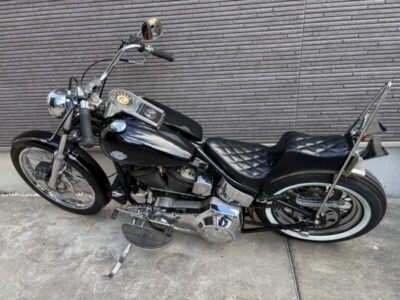 一番のポイントはリジッドフレーム。サスペンションを持たないこのフレームはコンパクトで軽く何よりカッコいい!乗り心地は最低ですが今回のバイクは「乗って良し」より「眺めて良し」を優先(^^) サスペンション無しのフレームでは国内の車検が受けられないので車体はアメリカから来ました、排気量は1340cc。