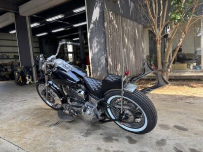 一番のポイントはリジッドフレーム。サスペンションを持たないこのフレームはコンパクトで軽く何よりカッコいい!乗り心地は最低ですが今回のバイクは「乗って良し」より「眺めて良し」を優先(^^) サスペンション無しのフレームでは国内の車検が受けられないので車体はアメリカから来ました、排気量は1340cc。